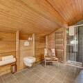 On the 1st floor: bedroom(double bed or 2 single beds), bedroom(double bed), Bedroom with bathroom(double bed, shower, washbasin, toilet), bathroom(shower, washbasin, toilet)