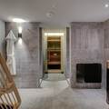 Fan, Fan, Kitchen(oven, dishwasher, fridge, freezer, dishes and cutlery), Living/diningroom(TV(satellite), dining table, seating area, wireless music system, netflix), bedroom(single bed, single bed, single bed), Bedroom with bathroom(double bed, washbasin, toilet, balcony), Bedroom with bathroom(double bed, washbasin, toilet), Bedroom with bathroom(double bed, shower, washbasin, toilet), bathroom(shower, washbasin, toilet), fitness room, ski storage, Internet access, Garden Furniture , tumble dryer, hot tub, sauna, washing machine, balcony, terrace, garden, bicycle storage, parking, swimming pool(shared with other guests), ironing board, iron, hairdryer, Charging post for electric cars