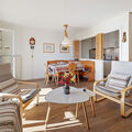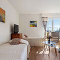 "Armorial Ouest 51", 2-room apartment 60 m2 on 2nd floor, south facing position. Fully renovated in 2022, modern and tasteful furnishings: large living/dining room with 1 pull-out bed (2 pers. 2 x 90 cm, length 200 cm), separate WC and satellite TV. Exit to the balcony. 1 room with 2 beds (90 cm, length 200 cm). Open kitchen (oven, dishwasher, 4 ceramic glass hob hotplates, toaster, kettle, electric coffee machine, Capsules for coffee machine (Nespresso) extra, raclette grill, combination microwave, fondue Set (cheese)). Shower. Balcony, south facing position. Balcony furniture, deck chairs (2). Beautiful view of the mountains and the countryside. Facilities: iron, hair dryer. Internet (WiFi, extra). Please note: non-smokers only. TV only FR, DE.