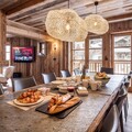 The spacious living room features a huge dining table, which is ideal for gathering around with family and friends in supreme comfort. The chalet is furnished to the very highest standard, with a blend of traditional timber features and luxurious, modern interiors, creating a true Alpine retreat. Chalet Les Sources de l’Isère is a stunning example of how traditional design can be seamlessly combined with the latest contemporary details.