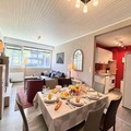 Spanning 73 m², the apartment is thoughtfully designed to accommodate up to eight guests. It features two cozy bedrooms with double beds and a third bedroom with two bunk beds, making it ideal for families or groups of friends. The spacious layout includes a modern shower room, two separate toilets, and a large window that floods the space with natural light while ensuring complete privacy. The fully equipped kitchen is a dream for culinary enthusiasts, offering everything from a hob and oven to a raclette and fondue set, perfect for enjoying traditional mountain meals after a day on the slopes. Additional amenities include a television, a washing machine, and both a standard and stick vacuum for your convenience.