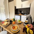 The apartment features a functional and inviting layout, with a living room that includes a comfortable sofa bed (160x190 cm) and a small dining area for shared meals. The kitchen is thoughtfully equipped with a refrigerator, combination oven, raclette grill, and a Senseo coffee machine, making it easy to prepare hearty breakfasts or après-ski dinners. A sleeping alcove with three single beds provides a cozy space for restful nights, while the modern shower room and separate toilet add convenience to your stay.