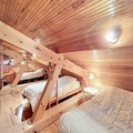 "The Elves' Hideaway": One large bedroom with a sloping ceiling, a cozy retreat with one double bed and two single beds.