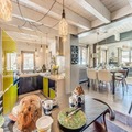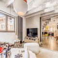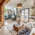 - 1 Living/dining room with a fireplace, TV, sofa, table, and chairs for 8 people