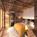 This chalet, scheduled for completion in 2025, can accommodate up to 14 people. The living area is spacious, occupying the entire upper floor.