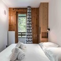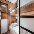 Inside, the apartment is thoughtfully designed to accommodate up to six guests. The open-plan living area features a warm and inviting lounge, perfect for relaxing after a day of adventure. The fully equipped kitchen includes an oven, refrigerator, coffee maker, and more, making it easy to prepare hearty meals. The sleeping arrangements are equally comfortable, with two double bedrooms offering balcony access, an alcove with bunk beds, and two bathrooms for added convenience. Modern amenities such as WiFi and a ski locker ensure a hassle-free stay.