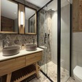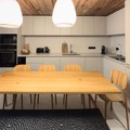 The apartment is thoughtfully designed with three bedrooms, including a master suite with an en suite bathroom featuring a double vanity, shower, and toilet. A second double bedroom and a third room with two sets of bunk beds make it ideal for families or groups of up to eight guests. A second bathroom and a separate toilet ensure everyone’s comfort. The fully equipped kitchen, complete with a Nespresso machine, wine cellar, and modern appliances, invites you to prepare delicious meals after a day on the slopes. The residence also boasts a premium ski room and a private indoor parking space with an electric vehicle charger, adding to the ease of your stay.