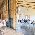 A cozy living room with a wood-burning stove, perfect for evenings by the fire.