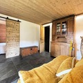 Multipurpose room used as a dormitory, equipped with a 140 cm sofa bed, adjoining the fourth bedroom and offering direct access to the outside