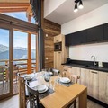 Step into this modern 2-bedroom apartment, thoughtfully designed to accommodate up to six guests. The warm and inviting interiors blend authenticity with contemporary comfort, featuring an open-plan kitchen, a cozy living room with a sofa bed, and a private balcony to soak in the stunning vistas. The sleeping arrangements include a double bedroom and a twin bedroom, ensuring restful nights for everyone. Additional amenities such as a ski locker and an outdoor parking space make your stay as convenient as it is comfortable.
