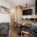 Step inside and discover a thoughtfully designed space that blends modern comfort with alpine charm. The apartment features a cozy living room with a fully equipped kitchen, opening onto a private balcony where you can savor your morning coffee while soaking in the panoramic views. The bedroom, complete with a plush double bed, ensures restful nights, while the sleek shower room and separate toilet add convenience to your stay. Additional amenities such as a ski locker and a secure underground garage make this residence as practical as it is inviting.