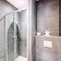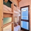 The apartment has 4 bedrooms and can accommodate up to 8 people. It includes 2 double bedrooms with en-suite bathrooms, as well as two additional bedrooms: a double bedroom and a cabin bedroom with bunk beds. These two bedrooms share a spacious shower room.