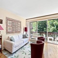 Outside, the south-facing balcony offers a peaceful mountain view.