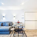 "Curling B3 51", 1-room studio 22 m2, south-west facing position. Fully renovated in 2025, comfortable furnishings: entrance hall with 1 x 2 bunk beds (80 cm, length 190 cm). Living/dining room with 1 double sofabed (1 x 140 cm, length 190 cm), TV and heating stove. Exit to the balcony, south facing position and west facing position. Open kitchen (2 hot plates, oven, toaster, kettle, electric coffee machine). Bath/WC. Very beautiful view of the mountains. Facilities: Internet (WiFi, extra). Please note: smoke alarm. Instead of an enclosed bedroom, some sleeping areas are located in an open-plan area (gallery, alcove, etc.). Offer by a private individual according to Art. 155, IV of CGI.