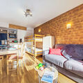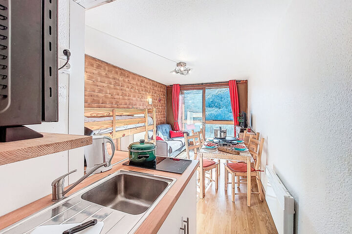 1-room apartment 22 m2 on 12nd floor, south facing position. Beautiful furnishings: living/dining room with 1 double sofabed (140 cm, length 190 cm), 1 x 2 bunk beds (90 cm, length 190 cm), TV (flat screen). Exit to the balcony. Kitchenette (oven, 2 induction hot plates, toaster, kettle, microwave, electric coffee machine, Capsules for coffee machine (SENSEO) extra, raclette grill). Bath/WC. Electric heating. Parquet floors. Balcony 4 m2, south facing position. View of the ski run. Facilities: iron. Internet (WiFi, extra). Please note: non-smokers only. Smoke alarm. Offer by a private individual according to Art. 155, IV of CGI.