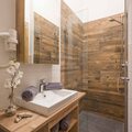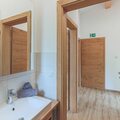 On the 1st floor: Living room(TV, dining table, seating area), open kitchen(electric kettle, toaster, cooker(4 ring stoves, ceramic), hood, coffee machine, oven, dishwasher, fridge), bedroom(double bed), bedroom(double bed), bathroom(shower, washbasin, toilet), bathroom(shower, washbasin, toilet), balcony