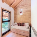 A third double bedroom with two single beds (2 x 80 x 200 cm), a built-in wardrobe, and a closet. A bathroom with a walk-in shower, a washbasin, a towel warmer, and a hairdryer. The mezzanine is not accessible. There is exterior access to a balcony with a view of the Roc d'Enfer.