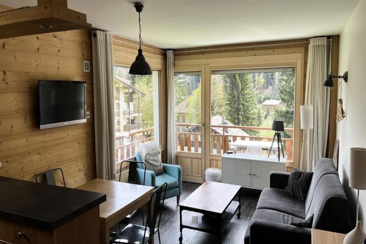 Beautiful, comfortable apartment for 5 people. Close to the Grand-Bornand village center and shops. Ski bus stop right outside the residence.