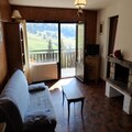 Inside, the 39m² apartment is thoughtfully designed to accommodate up to six guests. The layout includes a separate kitchen for preparing hearty meals after a day of adventure, a living room with a comfortable sofa bed, a cozy bedroom with two single beds, and a mountain alcove featuring bunk beds. The bathroom includes a bathtub, perfect for unwinding after exploring the slopes or trails. With its warm and functional design, this rental is ideal for families or small groups seeking a memorable alpine getaway.