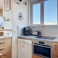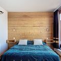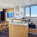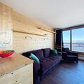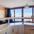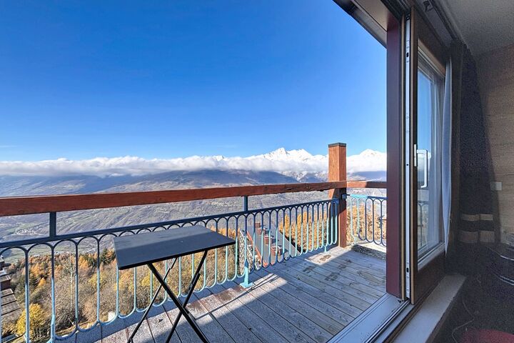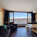 3-room apartment 56 m2 on 8th floor. Practical and comfortable furnishings: living/dining room with 1 double sofabed (160 cm, length 200 cm), dining table and TV (flat screen). Exit to the balcony, south facing position. 1 room with 1 french bed (160 cm, length 200 cm). Exit to the balcony. Sleeping alcove with 1 x 2 bunk beds (80 cm, length 190 cm). Open kitchen (oven, dishwasher, 4 ceramic glass hob hotplates, toaster, kettle, microwave, electric coffee machine). Bathroom, sep. WC. Large balcony, south-west facing position. Balcony furniture. Very beautiful panoramic view of the mountains and the ski run. Facilities: washing machine. Please note: non-smokers only. Offer by a private individual according to Art. 155, IV of CGI.
