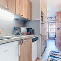 1-room studio 21 m2 on 6th floor, north facing position. Fully renovated in 2025, modern and cosy furnishings: living/dining room with 1 double sofabed (1 x 140 cm, length 190 cm), dining table and TV (flat screen), electric heating. Exit to the balcony, north facing position. Entrance hall with kitchen corner. Sleeping alcove with 1 x 2 bunk beds (80 cm, length 190 cm). Kitchenette (oven, dishwasher, 2 induction hot plates, toaster, kettle, electric coffee machine, Capsules for coffee machine (Nespresso) extra). Bath/WC. Parquet floors. Small balcony 3 m2. Beautiful view of the valley, the ski run and the resort. Facilities: safe. Internet (WiFi, free). Please note: non-smokers only. Smoke alarm. Offer by a private individual according to Art. 155, IV of CGI.