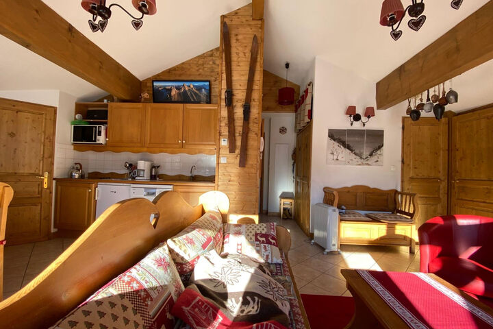 "Balcons des Pistes C", 3-room apartment 48 m2 on 3rd floor. Object suitable for 6 adults. 1 room with 1 french bed and TV. 1 room with 1 double bed. 1 room with 2 beds. Kitchen (dishwasher, 4 ceramic glass hob hotplates, toaster, microwave, electric coffee machine). 2 showers/WC. Balcony. View of the mountains. Garage (1 car). Please note: non-smokers only. Smoke alarm. Offer by a commercial proprietor according to Art. 155, IV, CGI 38253003300AK