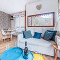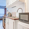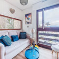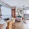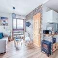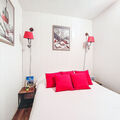 "Le Diorama 13", 2-room apartment 37 m2 on 2nd floor. Living/dining room with TV (flat screen). Exit to the balcony. 1 room with 2 beds (90 cm, length 190 cm). Sleeping alcove with 1 french bed (140 cm, length 190 cm). Kitchenette (oven, 2 induction hot plates, toaster, kettle, electric coffee machine, combination microwave). Bathroom, sep. WC. Gas heating. Balcony, west facing position. Balcony furniture. Partial view. Facilities: washing machine. Internet (WiFi, free). Parking. Please note: TV only FR. Smoke alarm. Offer by a commercial proprietor according to Art. 155, IV, CGI