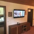 The Jäger country house has three big apartments, each with 65m² of living space. Each apartment has two bedrooms. One apartment has two double beds and a bunk bed and is therefore suitable for six people, of which two children. The kitchen is very well-equipped, with a dishwasher, microwave, electric hob with four rings and an oven, fridge with big freezer compartment. The apartments also have a dining corner, a sofa suite and an entrance area. The bathroom has a shower and a washbasin. The WC is separate. A cot is available for toddlers on request. All the apartments have a flatscreen TV with cable channels and free wireless Internet access.