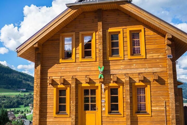 The wooden chalet Fanningberg with a terrace on stilts is situated in a quiet hillside location with mountain views. It has a small living/dining room with TV, fireplace and sofa as well as a small kitchen with dishwasher, oven and ceramic hob... Washing machine and tumble dryer are also available. The two bedrooms with balcony access are located on the upper floor. One bedroom has a double bed and TV. The 2nd bedroom is equipped with a bunk bed, which is primarily suitable for children. We therefore recommend travelling with two adults and two children! WLAN is available to our guests free of charge. Hiking and culture, sport and relaxation are very important here. The ski slope is only 300 metres away. The Aineck Katschberg ski area is in the immediate vicinity. In winter you can enjoy marvellous snow hikes, ski excursions and horse-drawn sleigh rides. Cross-country ski trails are also in the immediate vicinity. In summer, the most beautiful hiking trails and sports such as cycling, paragliding, white-water rafting etc. beckon. Moosham Castle (2 km) is a World Heritage Site.