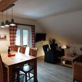 The holiday flat on the top floor is equipped with everything you need for a relaxing stay: a living room with satellite TV and balcony, a fully equipped kitchen with microwave, dishwasher, kettle and a Senseo coffee machine. There is also a double room with bunk beds, two further double rooms with satellite TV, two bathrooms (shower/WC) and an anteroom. Underfloor heating and a ski and ski boot drying facility in the house provide additional comfort.