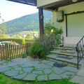 Step outside onto the private balcony, a crown jewel of leisure and relaxation at Apartment Speiereck. This idyllic outdoor space, accessible from the bedroom or living area, is perfectly equipped for al fresco dining set against the mesmerizing backdrop of panoramic mountain vistas. The balcony, along with cafe-style tables, comfortable seating, and sun chairs, invites you to indulge in relaxation under the Alpine sky. Beyond the balcony, a garden/grill area with a picnic table and sun loungers await, set against sunny, picturesque views and a lush lawn ideal for sunbathing or outdoor activities.