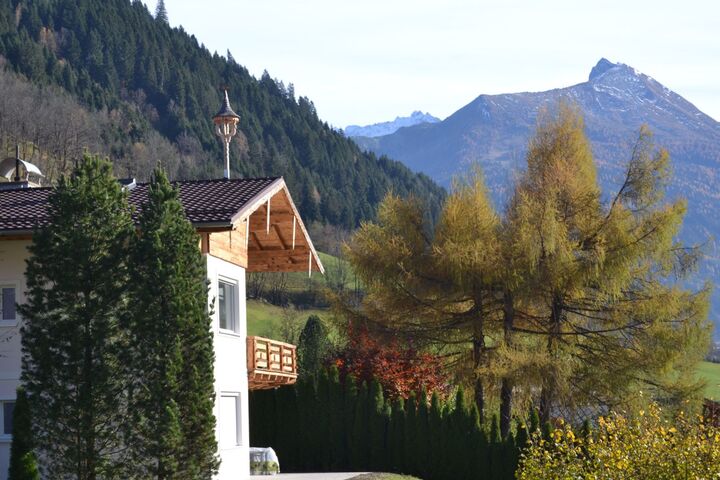 Inside you will find a modern flat of 120 m², situated on the upper and top floor in a quiet hillside location. The luxurious interior, which is characterised by wood and stone, includes a spacious living area with an open-plan kitchen and fireplace corner, from where you can marvel at the fantastic Alpine panorama. Two cosy bedrooms on the upper floor and another on the top floor offer high-quality sleeping comfort. The modern bathroom with free-standing bathtub and large rainfall shower as well as a separate WC round off the feel-good ambience. A fully equipped kitchen, HD flat-screen TV, high-speed WLAN and other comforts ensure an unrivalled living experience.
