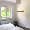 The interior design of our 100m² ground floor flat reflects the awe of the surrounding nature. Modern amenities meet alpine design. The spacious living area with open-plan kitchen, equipped with a high-gloss kitchen and a bar with panoramic views, invites you to linger. The two cosy bedrooms, one with a double bed and the other in alpine hut style with bunk beds, offer space to relax after a day in the mountains. A modern bathroom with free-standing bathtub and large rainfall shower as well as a separate WC complete the picture.