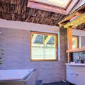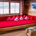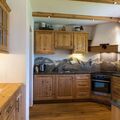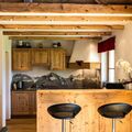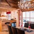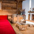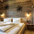 Inside the chalet, 230 m² of living space await you with exclusive furnishings that will make your stay unforgettable. The open-plan kitchen with a direct view of the spacious dining table and the hand-planed furniture made from old wood give the room a cosy atmosphere. The living area with an impressive divan made of old larch wood in front of the open fireplace, a high-quality Bose sound system and a flat-screen TV offers the highest level of technical and visual comfort. A special highlight is the artistically designed silhouette of the Olperer, which emphasises the connection to the Zillertal mountains.