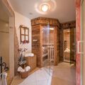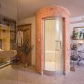 wellness area with sauna, steam bath, infrared cabin and cosy relaxation room, bathrobes and towels,