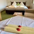 This studio with around 32m² of living space is ideal for two people. It provides cosy accommodation comprising a living room-bedroom with a double bed and dining corner. There is also a separate little fully-equipped kitchen, as well as a shower room with a WC. Satellite TV and a hairdryer are available. Wi-Fi is available throughout the house. Children up to two years old in a cot stay free of charge.