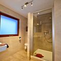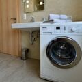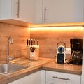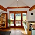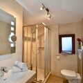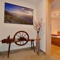 Three double rooms (including one triple room) are on the ground floor, one double room and two bathrooms with shower/WC and washbasin (including washing machine) are on the ground floor, three further double rooms (including one triple room) and two bathrooms with shower/WC and washbasin are on the first floor and a further double room and a bathroom with bath/WC and washbasin are on the second floor. On the ground floor there is a large living and dining area with a fully equipped kitchen, in the living area a fireplace with stove bench and lounge area as well as a large dining area for up to 18 people.