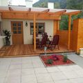 The outdoor area of the holiday flat with its own terrace invites you to linger and relax outdoors. Here you can enjoy the peace and quiet and round off the day with breakfast in the open air or a barbecue in the evening. The private entrance to the flat, which is located on the lower ground floor at the rear of the house, guarantees your complete privacy.