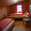 The rooms of the flat are divided into 1 double room with a large double bed, 2 twin rooms each with two single beds, 1 cosy living room with corner bench, table and wood-burning stove, 1 spacious and well-equipped kitchen and 1 bathroom with shower, WC and hairdryer.