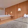 Purist design, oiled wooden floors, day beds by the panoramic windows with magnificent views of the mountains make for particularly natural and relaxed living.