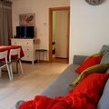 The bright and inviting interior of the flat includes a sunny living room with balcony and sofa bed, accompanied by a fully equipped kitchen. For your comfort, the flat offers a bedroom with a double bed and another bedroom with a single bed and the option of an extra bed. A fully equipped bathroom and a separate toilet complete the offer and ensure a carefree stay.