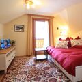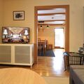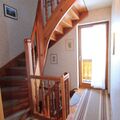 The interior of the chalet is fully designed to make your stay as comfortable as possible. On the ground floor, you will be greeted by a welcoming entrance hall, a cosy living room with a comfortable sofa bed and TV, a dining room with direct access to the terrace, a fully equipped kitchen and a practical WC with washing machine. The first floor has two double bedrooms, one of which has a balcony and TV, together with a modern bathroom with shower. The lovingly converted attic surprises with another spacious bedroom with a double sofa bed, TV, balcony and private bathroom.