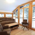 Inside, our flat offers all the amenities you need for a carefree stay. A large double bedroom with an inviting balcony and picturesque views of the valley, as well as another room with bunk beds, allow for a restful night's sleep after a day in the snow. The living room is furnished with a sofa bed and a terrace overlooking the garden, ideal for enjoying the peaceful surroundings. There is also a dining room, a fully equipped kitchen, a complete bathroom with shower, a bathroom with bath and washbasin and a separate WC.