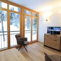 The outdoor area includes access to a carefully maintained small building with only 5 residential units as well as practical facilities such as a ski room with boot warmer, a bicycle storage room, a laundry room and a wellness area with sauna, steam bath, solarium and relaxation room (currently not accessible due to Covid regulations). An outdoor car park is provided for your vehicle so that you can explore the winter landscape without any worries.