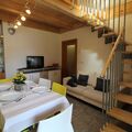 Inside, a cosy and bright ambience awaits you, spread over two levels. The flat has a comfortable living room with an adjoining kitchenette that leaves nothing to be desired - including a dishwasher. The highlight is the large, panoramic balcony, which invites you to linger. There is a bedroom with a double bed and a bathroom with a shower as well as a mezzanine overlooking the living room, which can be reached via a staircase and offers another bedroom with a double bed and a separate WC.