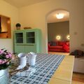 The outside area of our flat is just as inviting. Enjoy the morning freshness or a relaxing evening on the private terrace, which is furnished with a table and two chairs. This private area is perfect for enjoying the surrounding countryside in peace or simply starting the day with a cup of coffee.