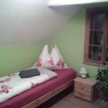 The accommodation of around 90m² is very comfortably furnished and exudes a pleasant atmosphere, inviting you to relax and enjoy your stay. During the renovation, the owner paid attention to ensuring that the charm of the old house was preserved, combining the old, rustic ambience with new, modern touches. The living room has a sofa suite, a coffee table, satellite TV, a CD player. The kitchen-diner has a dining corner and is equipped with an oven, a fridge with a freezer compartment, a stove, a microwave, a kettle and a Senseo coffee machine. Two of the four bedrooms are furnished with a double bed (200 x 180cm), the third has a single bed (90 cm wide) and the fourth has a French bed (140cm wide). The bathroom is fitted with a shower, a washbasin and a separate WC. A hairdryer can be borrowed on request for a deposit. The owner can provide a highchair and board games for all ages free of charge. Heating and free wireless Internet access are available in all the rooms in the house.