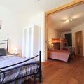 The interior of our flat leaves nothing to be desired. A cosy living room with kitchenette, equipped with oven and dishwasher, provides the perfect setting for shared meals and relaxed evenings. The sofa bed and another sofa in front of a large window invite you to linger with a view of the garden. Two spacious bedrooms, connected by a sliding door, offer space for up to six people with two double beds and a bunk bed. Two bathrooms, one of which has a washing machine and is equipped with a washbasin, bidet, shower and WC, also ensure your comfort.