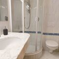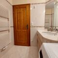 Inside the flat you will find two bedrooms and two bathrooms, one equipped with a shower and the other with a bathtub, ensuring privacy and comfort for all guests. Underfloor heating spreads a pleasant warmth throughout the flat on colder days. The practical facilities also include a washing machine, a fully equipped kitchen with a ceramic hob, a filter coffee machine, a kettle and a dishwasher, making self-catering a pleasure.
