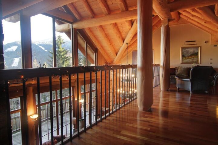 Chalet Caprea in Bad Kleinkirchheim is a unique designer log house available for rent in Austria. Stylish design and excellent facilities make it an exclusive choice of ski accommodation. The Chalet is an exclusive ski rental property with an outstanding location on the hillside overlooking the town of Bad Kleinkirchheim and positioned on the ski slope. Recently constructed, this large modern chalet has been designed with superb taste to create an extremely stylish holiday property. It is flooded with light and offers uninterrupted vistas over the sunlit Bad Kleinkirchheim valley from the bright and airy living spaces. An elegant color scheme and stylish rooms mean guests can retire to a calm and peaceful space when they would like some privacy.In the villa there are 6 bedrooms, 7 bathrooms, up to 14 guests can enjoy a superlative standard of accommodation spread over 700 square meters of living space. Prices are per Chalet per day. Extra is final cleaning and town tax. During high season minimum stay is 7 days and off season 3 days.Some of the excellent facilities at this large luxury chalet include a fitness area, a wellness area with sauna, steam room and Jacuzzi, Wi-Fi, cafe machine, bed linen, towels, child beds on request, parking/garage for up to 5 cars, dishwasher, balcony / terrace, massage chair, laundry room, LCD TV in each bedroom, ski room, firewood for Open fireplace, tanning bed,…all included in price.In Chalet Caprea you can also enjoy a private Movia Wine Cellar, Wine&Spirits – Top 100 wineries 2015 by Wine&Spirits.In short, in Chalet Caprea you will find everything you need to enjoy a thoroughly relaxing holiday in deluxe style.Short descriptionOther : Non-smoking houseShort description 1Number of kitchens : 2Other rooms : welness, fitness, solarium, wine cellar, garage, launderySurroundingNearby sports facilities : Bike tours, Canoeing, Climbing, Cross-country skiing, Fishing, Football area, Golf course, Horse stalls (guests), Hunting facilities, Ice skating, Mountain climbing, Mountainbiking, Paragliding, Skiing (alpin), Tennis, ToboggenRental Facilities : Bicycle rental service, Ski-, SnowboardGarden and outdoorGarden facilities : Garden furniture provided, Summer houseOn-site leisure facilities : Sauna, Separate fitness room, Solarium, Steam bath, Whirlpool